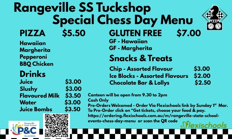 See details below of the tuckshop options on the day provided by Rangeville State School